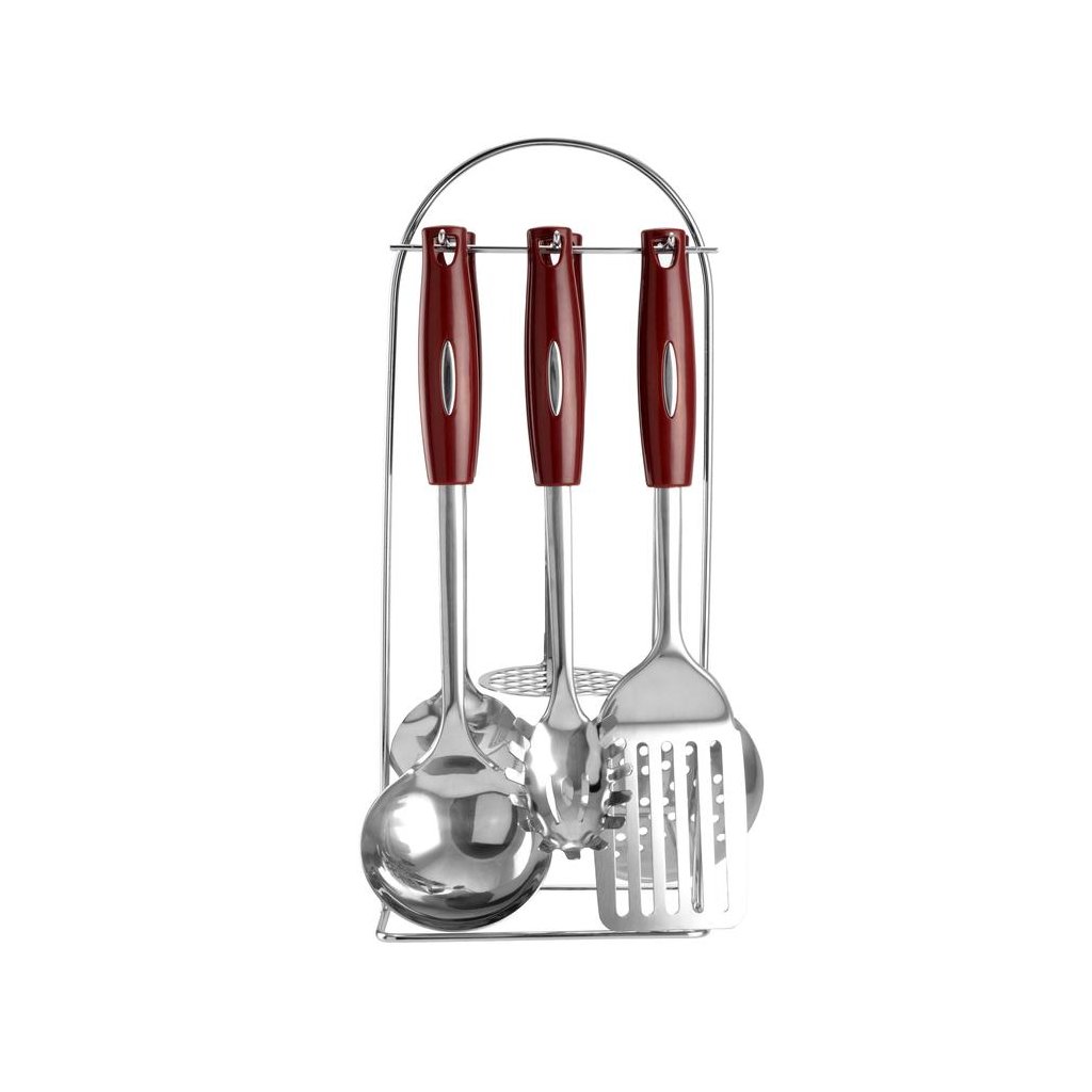- Obsah sady: - 1 ks stojan: 16,5 × 9*40 cm; 220 g - 1 ks mačkadlo na zemiaky: priemer hlavy 8 cm; výška 2,5 cm; 100 g - 1 ks sitko: priemer hlavy 11 cm; dĺžka 34 cm; 120 g - 1 ks naberačka: priemer hlavy 9,2 cm; dĺžka 33,5 cm; 120 g - 1 ks odmerka na cestoviny: hlava 6 × 8 cm; dĺžka 30,2 cm; 80 g - 1 odmerka: hlava 7 × 10,5 cm; 32,5 cm dlhá; 100 g - 1 dierkovaná špachtľa: hlavica 7,5 x 13 cm; dĺžka 34 cm; 100 g