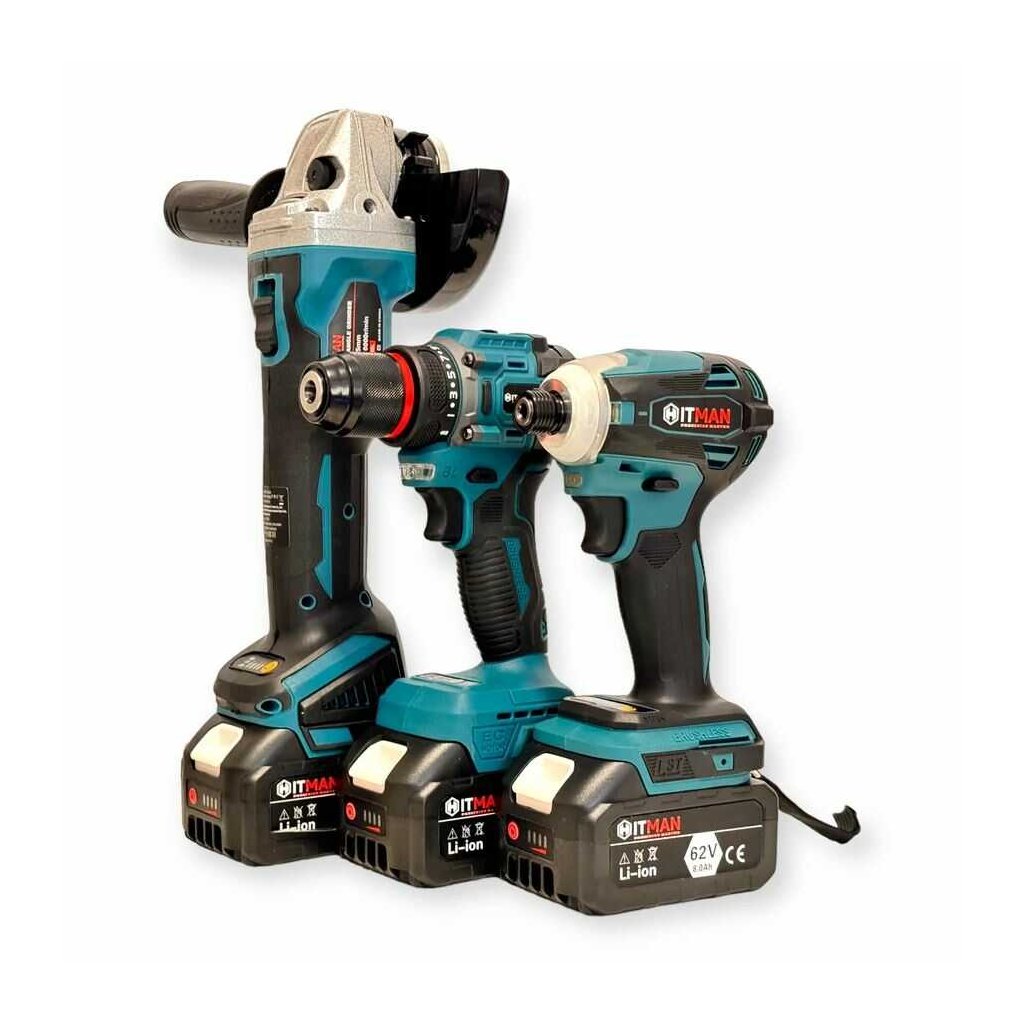 Výkonná kombinovaná aku sada 62V obsahuje tri nevyhnutné stroje pre stavbu, dielňu a montážne práce: príklepový vŕtací skrutkovač, rázový uťahovák a uhlovú brúsku s kotúčom 125 mm. Vysokonapäťový 62V akumulátorový systém zabezpečuje vysoký výkon porovnateľný so sieťovým náradím a zároveň slobodu práce bez káblov.