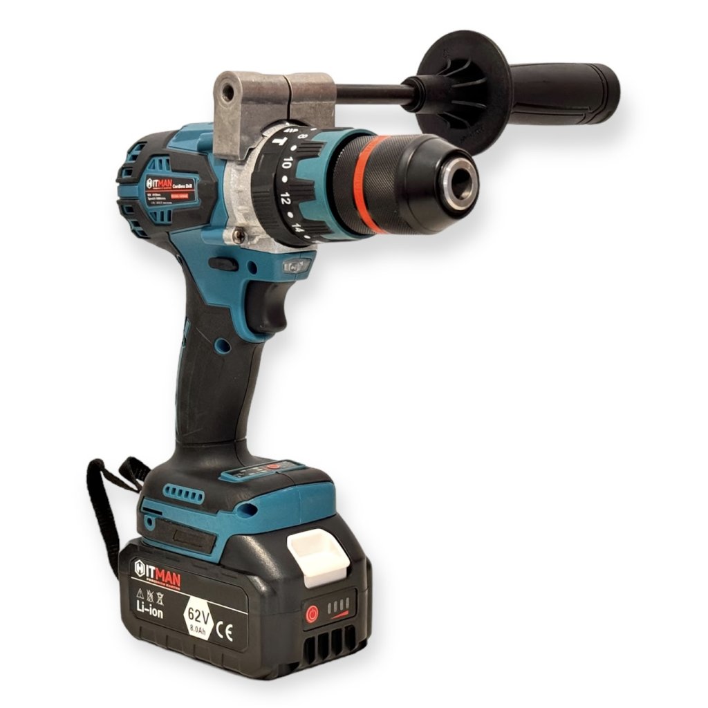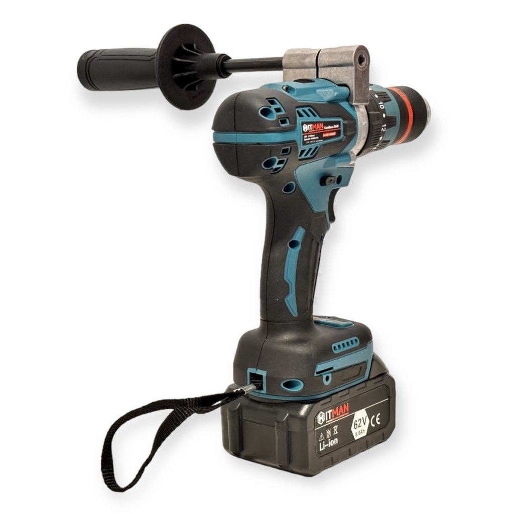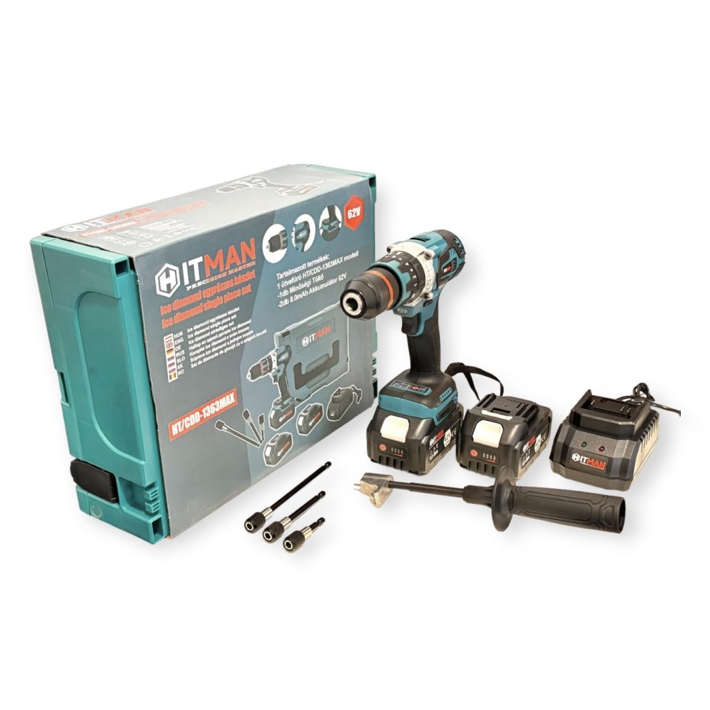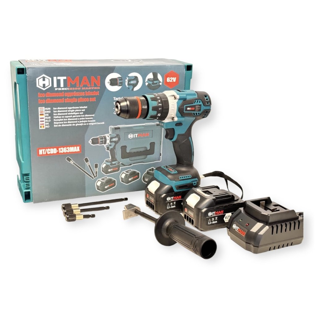 Akumulátorová vŕtačka a skrutkovač Hitman HT/CDD-1363MAX, 62 V, 2 batérie, 13 mm kovové rýchle skľučovadlo