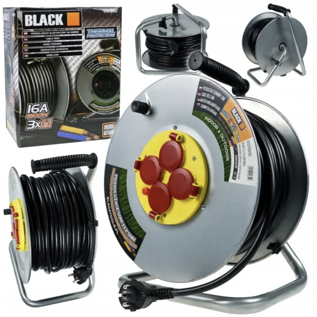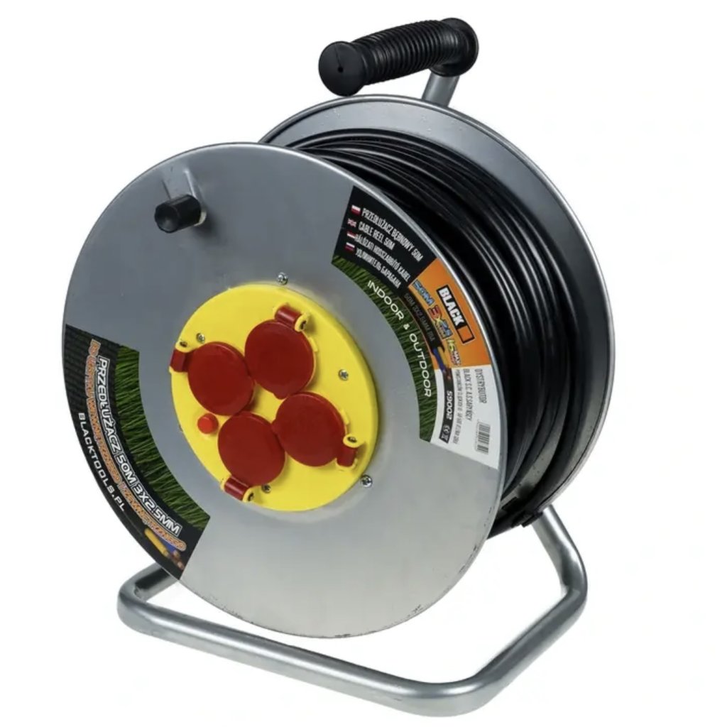 BLACK 50m predlžovacia šnúra, gumená, izolovaná, vonkajšia a vnútorná káblová cievka, IP44 – 59002