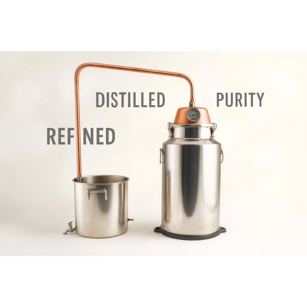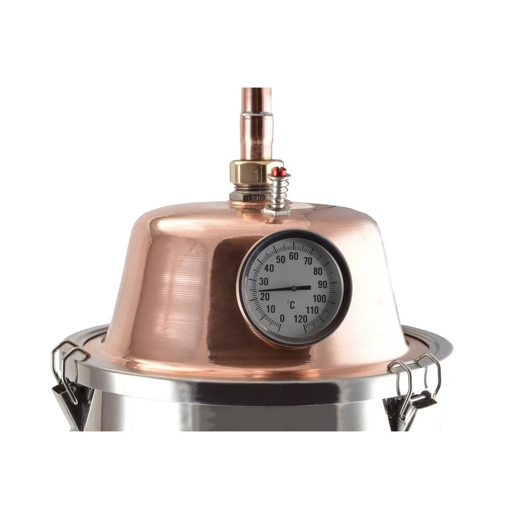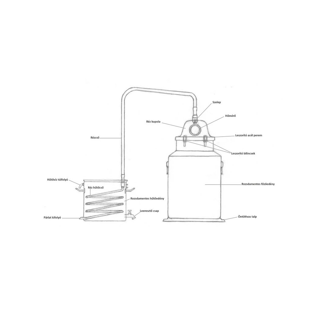 - Medená kupola, medená špirála a medené spojovacie potrubie pre kvalitný výsledný destilát.
