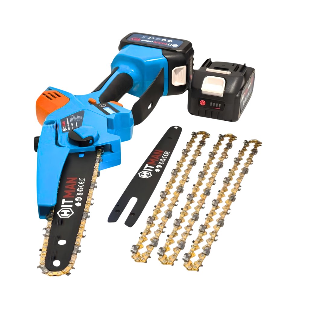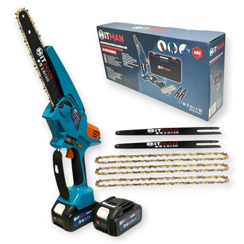 68V akumulátorová reťazová píla 8", 2× batéria, LCD displej, automatické mazanie, sada reťazí – HT-BCH5-6868ipro