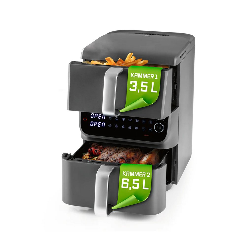 GOURMETMAXX Horkovzdušná fritéza/fritéza na horúci vzduch, dvojkomorová vertikálna, 3,5 + 6,5 litra