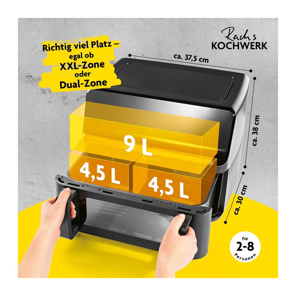 GOURMETMAXX Teplovzdušná fritéza/ Digitálna varná dvojkomorová 9l