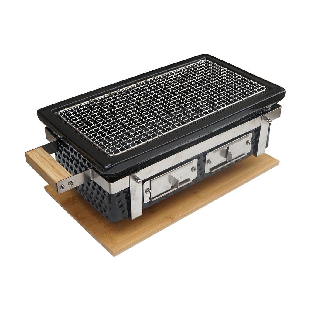 - Hibachi gril 39 × 22 cm štvorcový čierny Mriežka 17 × 34 cm