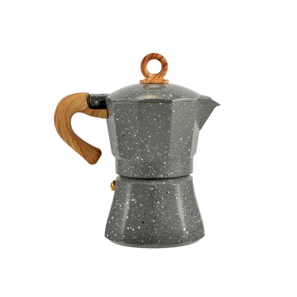 Kávovar mokka pre 3 osoby, sivý, s rukoväťou s efektom dreva