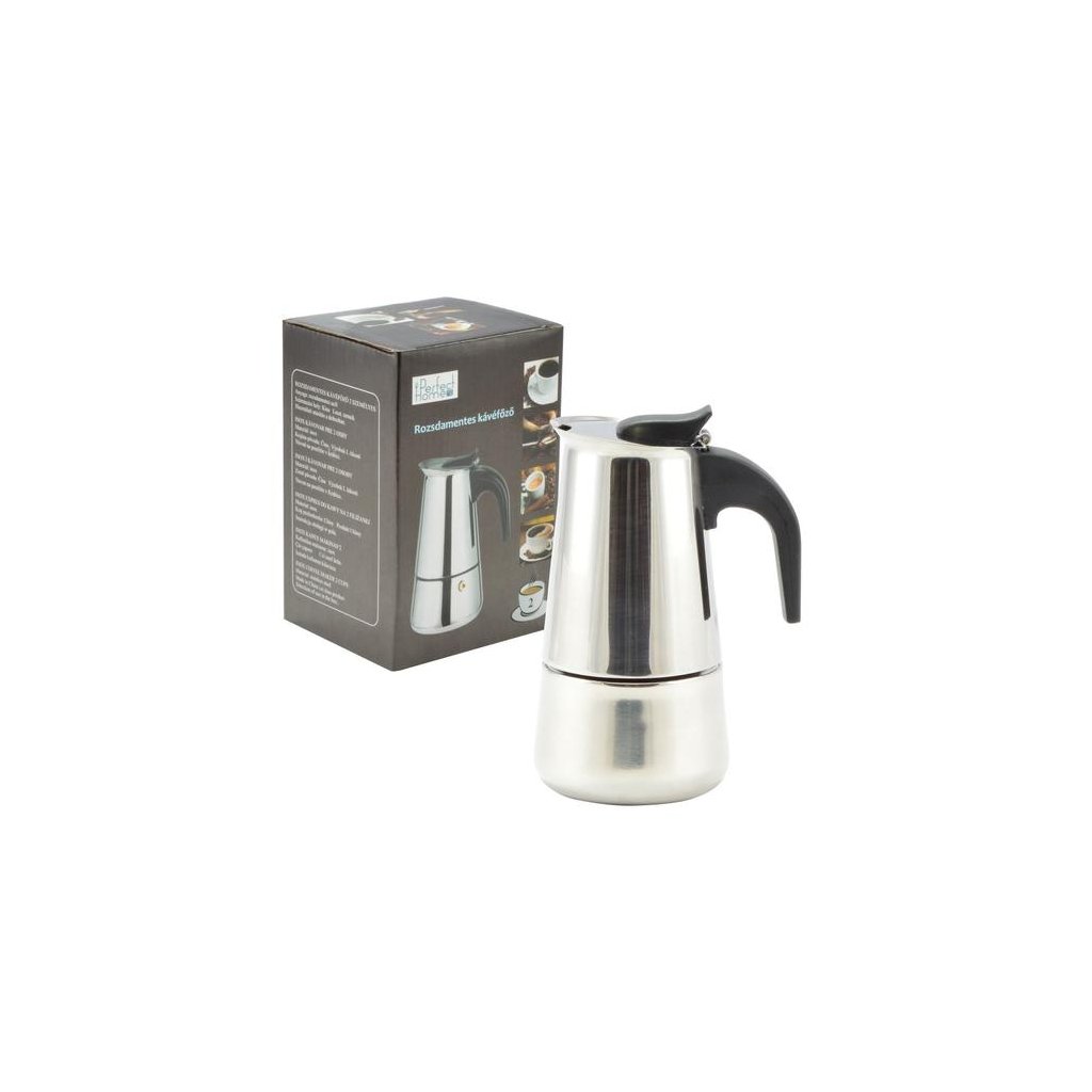- Čistenie: Umývajte neutrálnym tekutým čistiacim prostriedkom! Nepoužívajte abrazívne produkty a nástroje! Klasický kávovar z nehrdzavejúcej ocele s čiernou plastovou rukoväťou, ktorá neabsorbuje teplo. Vhodný na prípravu 2 šálok kávy súčasne.