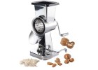 Ručný mlynček s kovovým telom a nerezovým bubnom. Zvládne mletie orechov, syra aj strúhanky bez zasekávania. Pevné uchytenie na stôl.