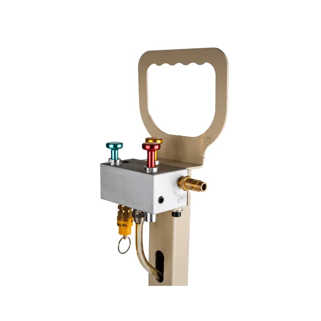Zdvihák pracuje s pracovným tlakom 6 – 12 bar, čo umožňuje jeho použitie s bežnými dielenskými kompresormi. Ovládací ventil je umiestnený priamo na rukoväti, čím je zabezpečené bezpečné a presné riadenie zdvihu počas celej manipulácie.