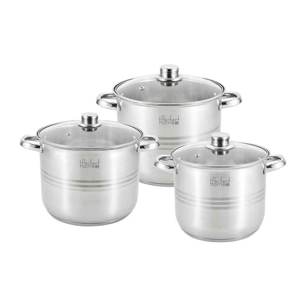 Perfect Home Sada hrncov z nehrdzavejúcej ocele / sada hrncov so sklenenou pokrievkou ~5/7/9 litrov