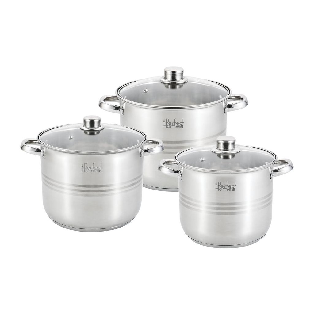 Perfect Home Sada hrncov z nehrdzavejúcej ocele / sada hrncov so sklenenou pokrievkou ~7/9/11 litrov