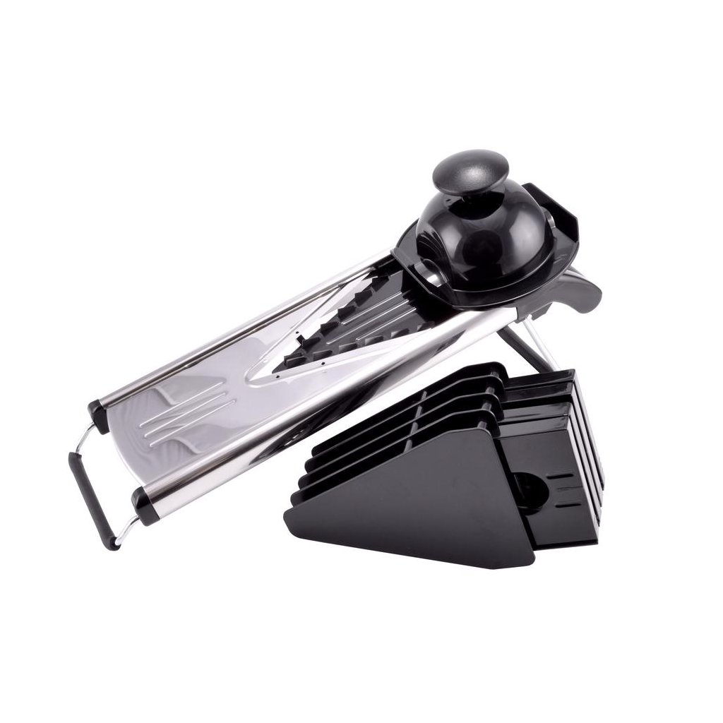 - Obsah: 1 držiak na čepele; 3 krájacie nadstavce (1,5 mm; 2,5 mm; 3,5 mm); 2 nadstavce na julienne (3 mm; 7 mm); 1 chránič prstov