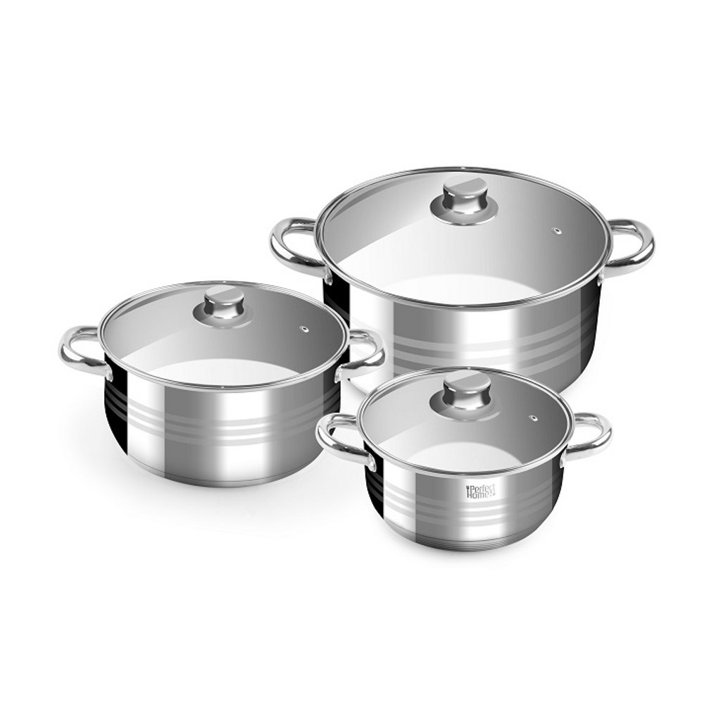 Perfect Home Sada riadu / hrncov z nehrdzavejúcej ocele so sklenenou pokrievkou