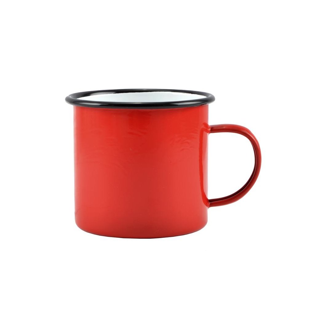 Smaltovaný hrnček 10 cm 670 ml červeno-biely