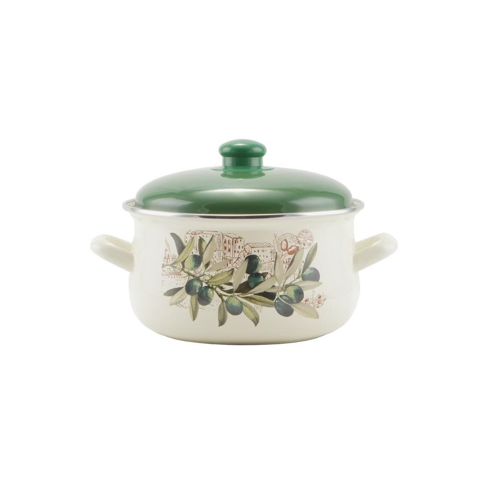 Smaltovaný hrniec Oliva 20 cm s pokrievkou